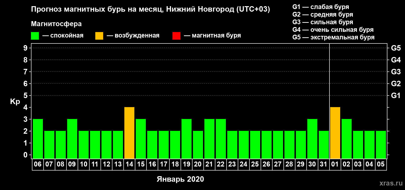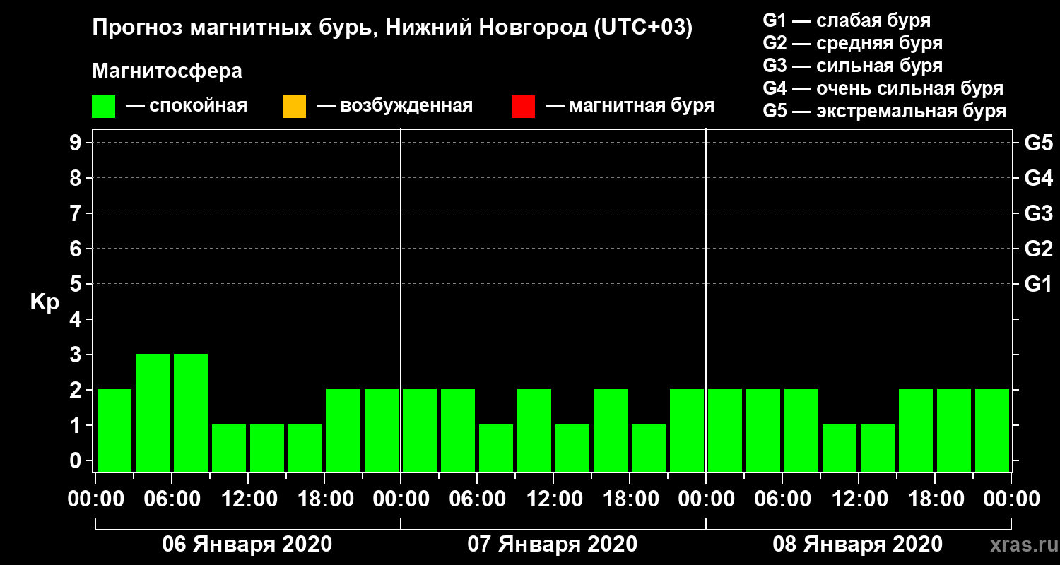 Прогноз магнитных бурь Нижнем Новгороде на 6 января 2020 года