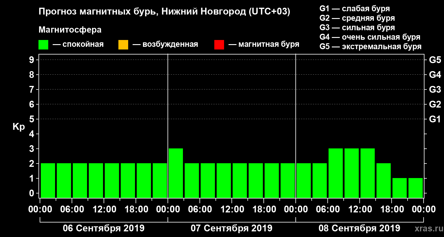 Прогноз магнитных бурь Нижнем Новгороде на 6 сентября 2019 года