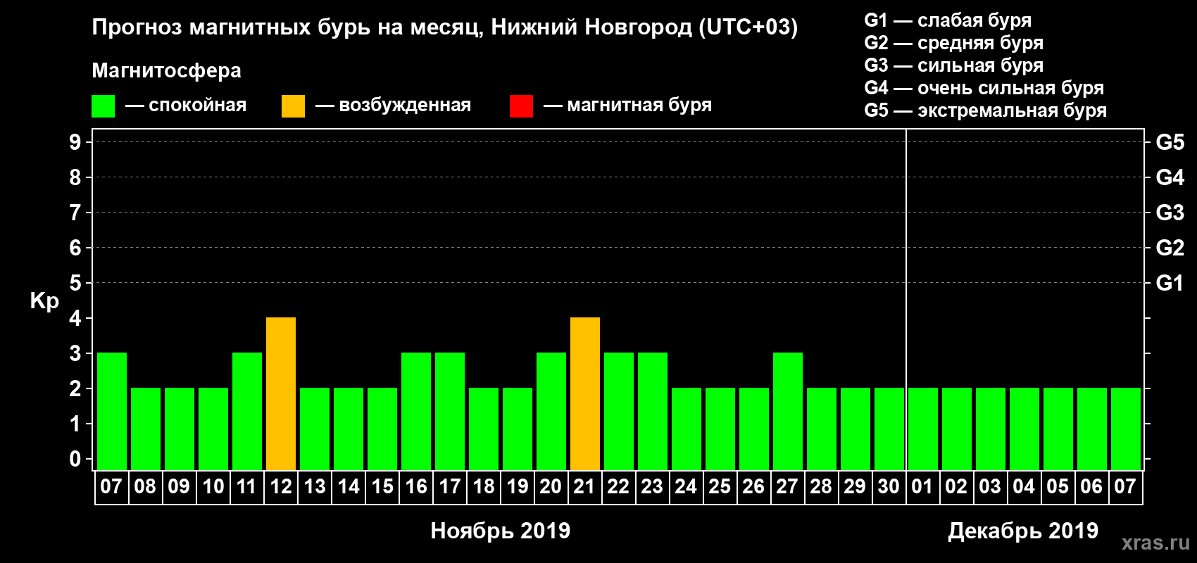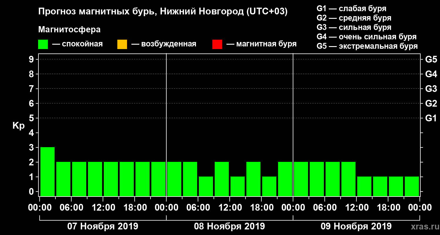 Прогноз магнитных бурь Нижнем Новгороде — 7 ноября 2019 года