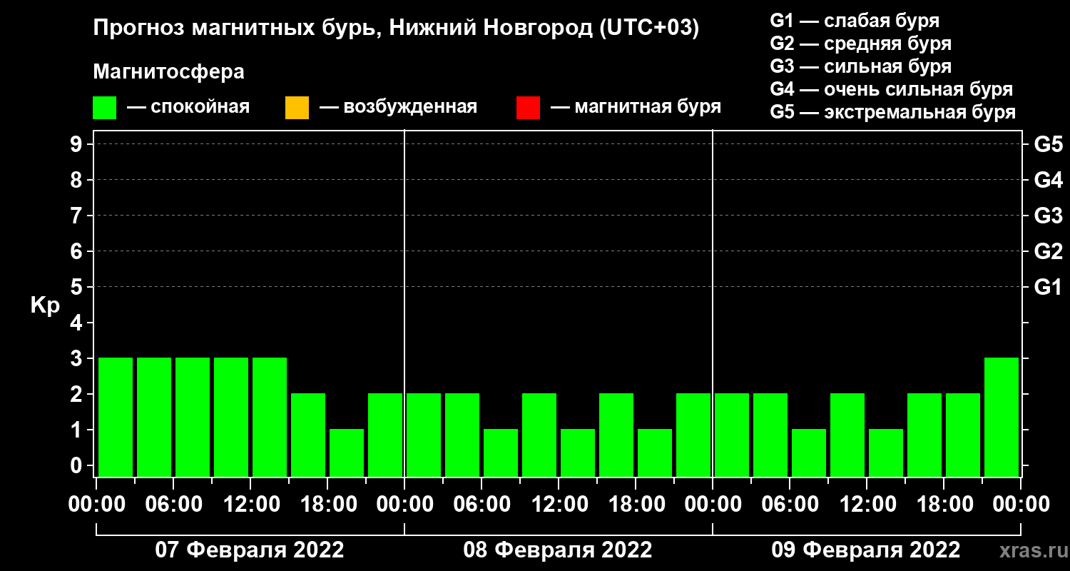 Прогноз магнитных бурь Нижнем Новгороде на 7 февраля 2022 года