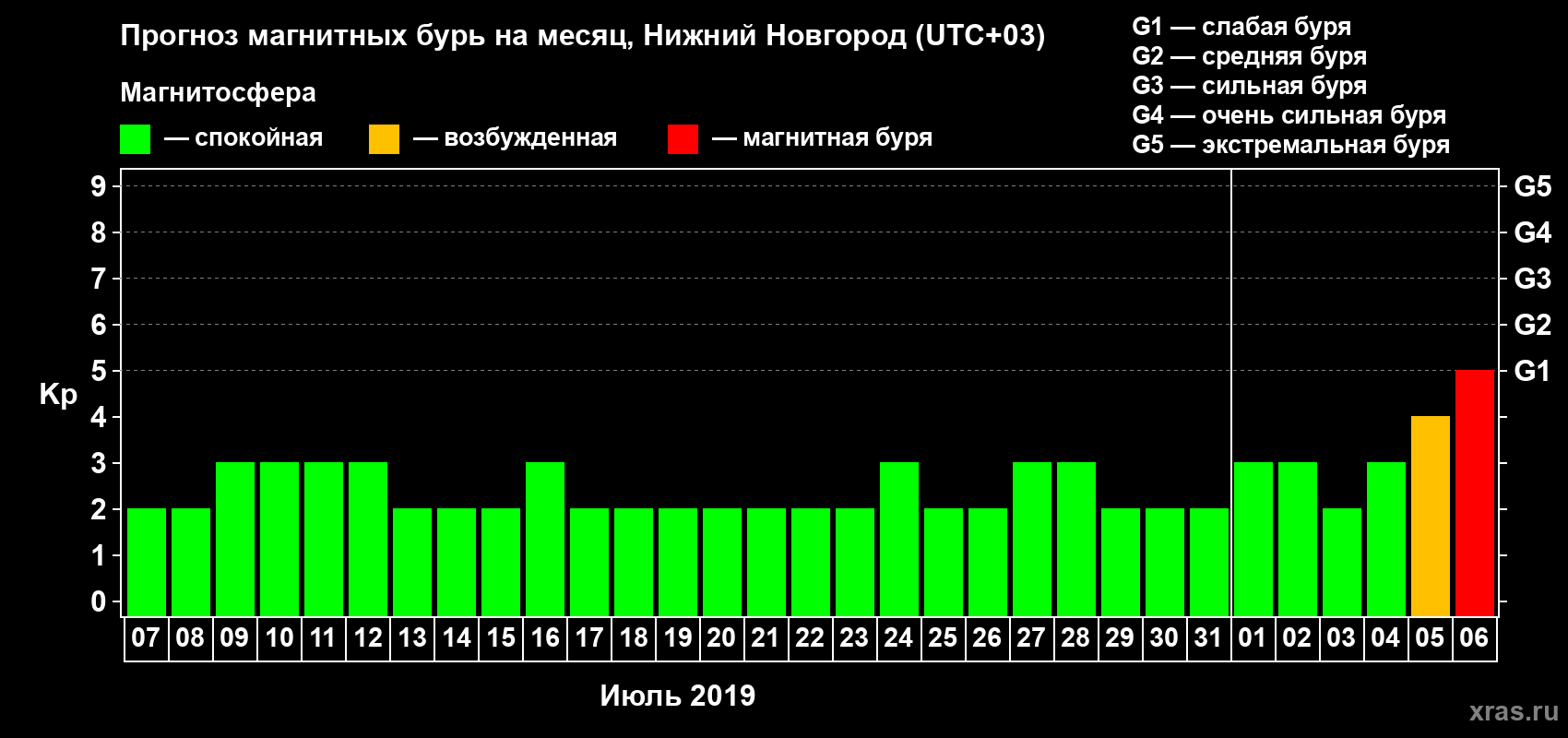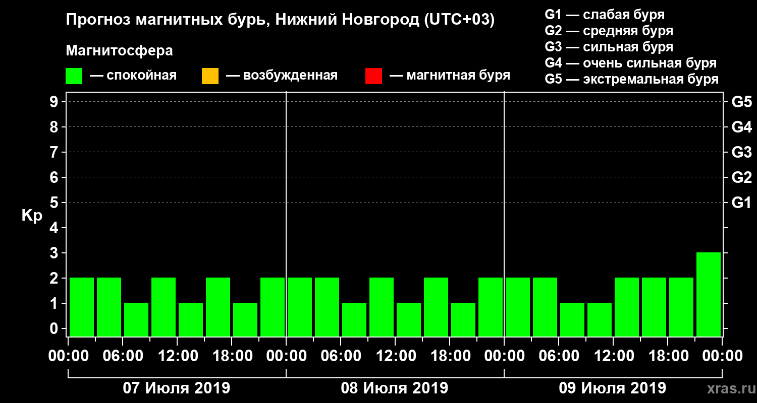 Прогноз магнитных бурь Нижнем Новгороде на 7 июля 2019 года