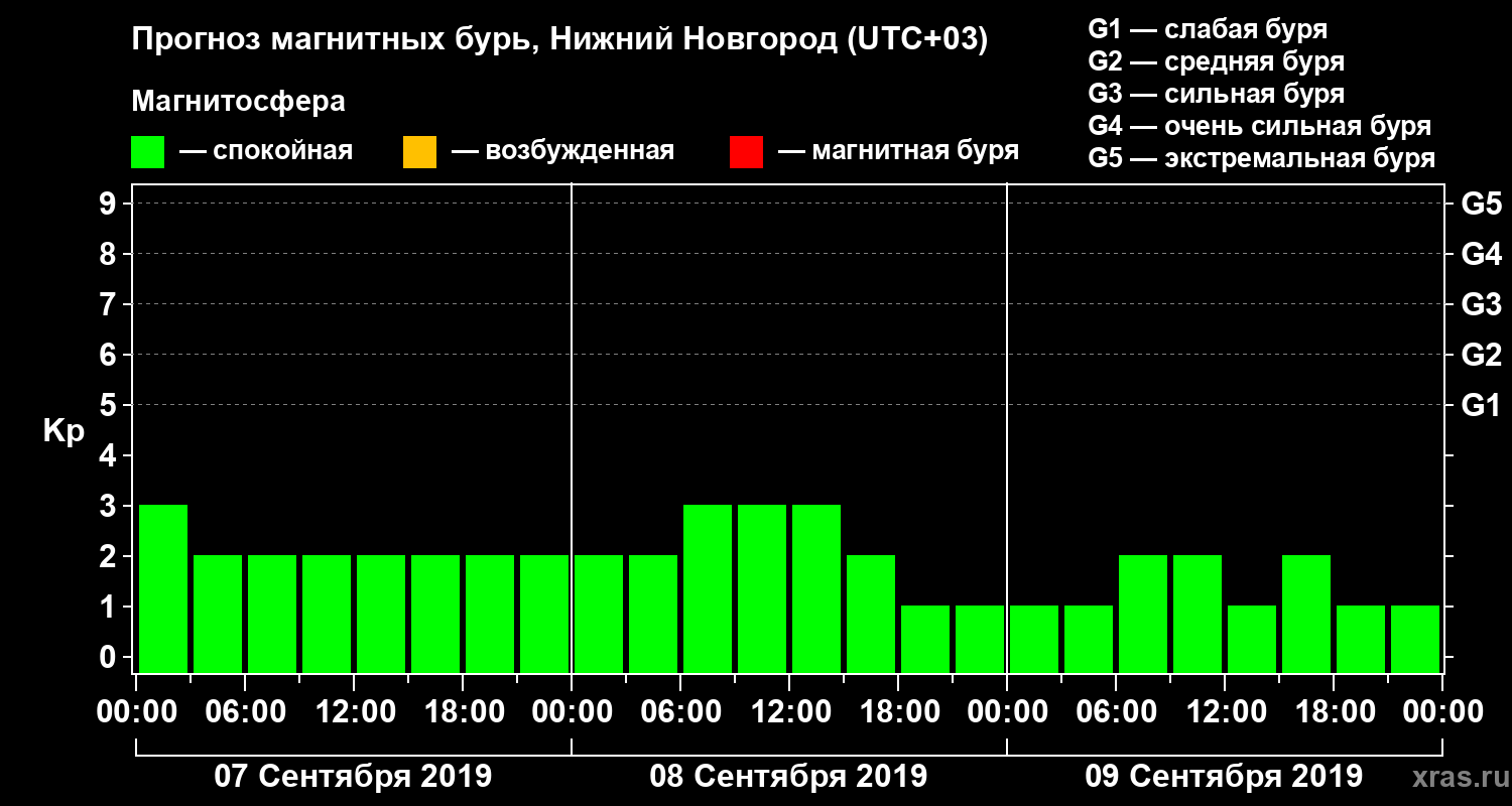 Прогноз магнитных бурь Нижнем Новгороде на 7 сентября 2019 года