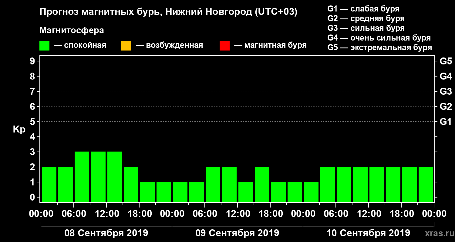 Прогноз магнитных бурь Нижнем Новгороде на 8 сентября 2019 года