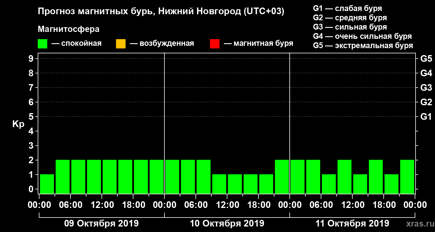 Прогноз магнитных бурь Нижнем Новгороде — 9 октября 2019 года