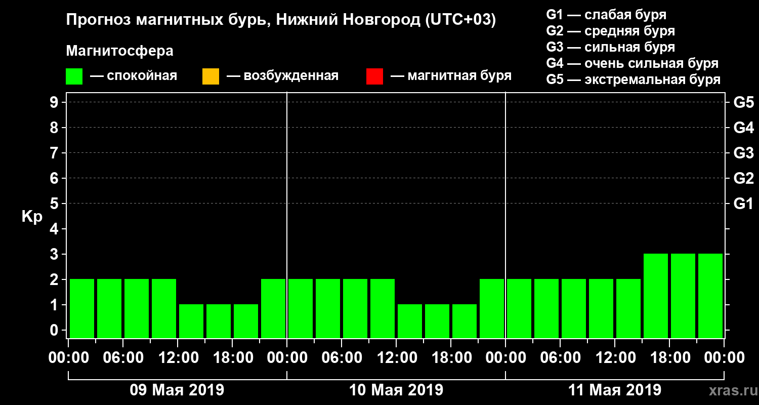 Прогноз магнитных бурь Нижнем Новгороде на 9 мая 2019 года