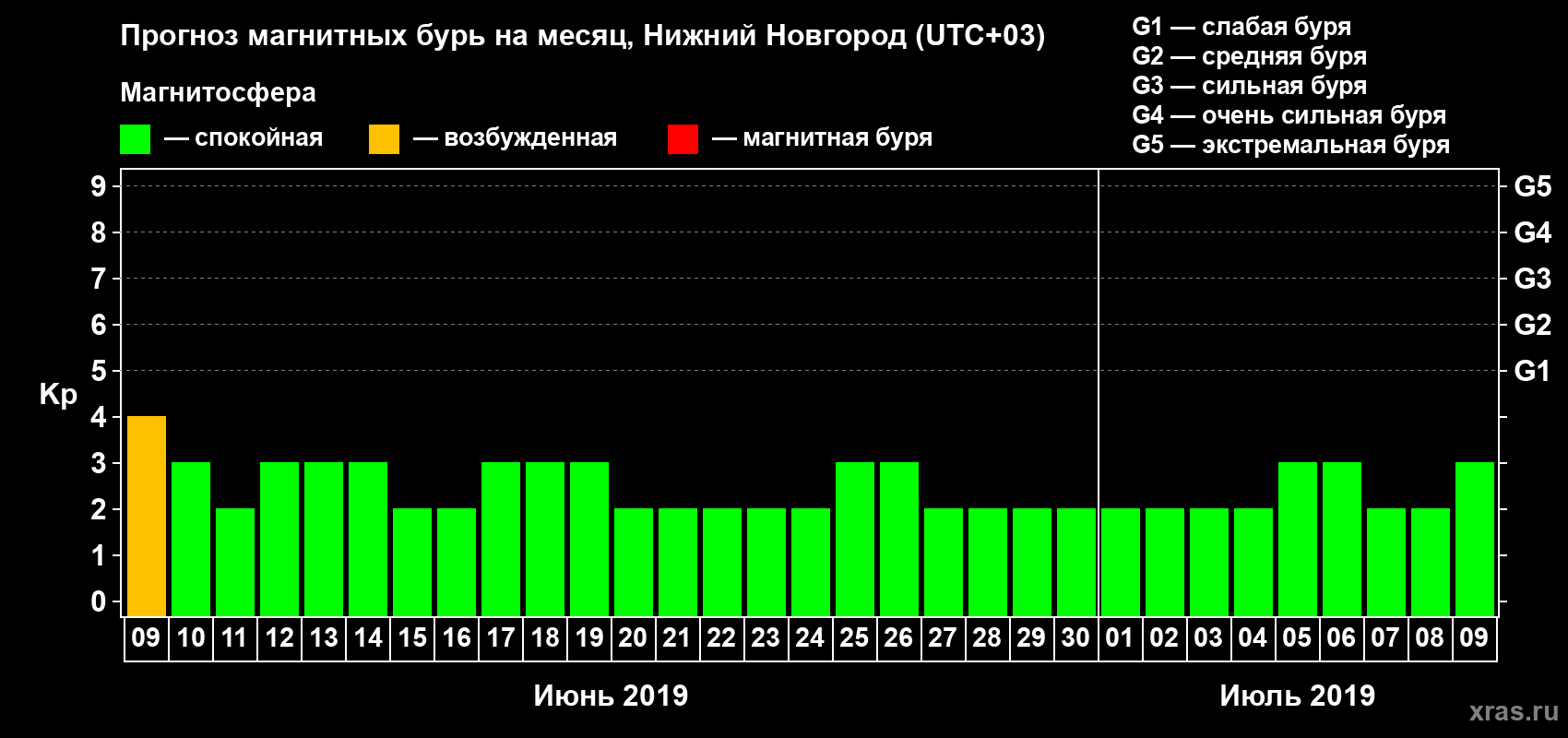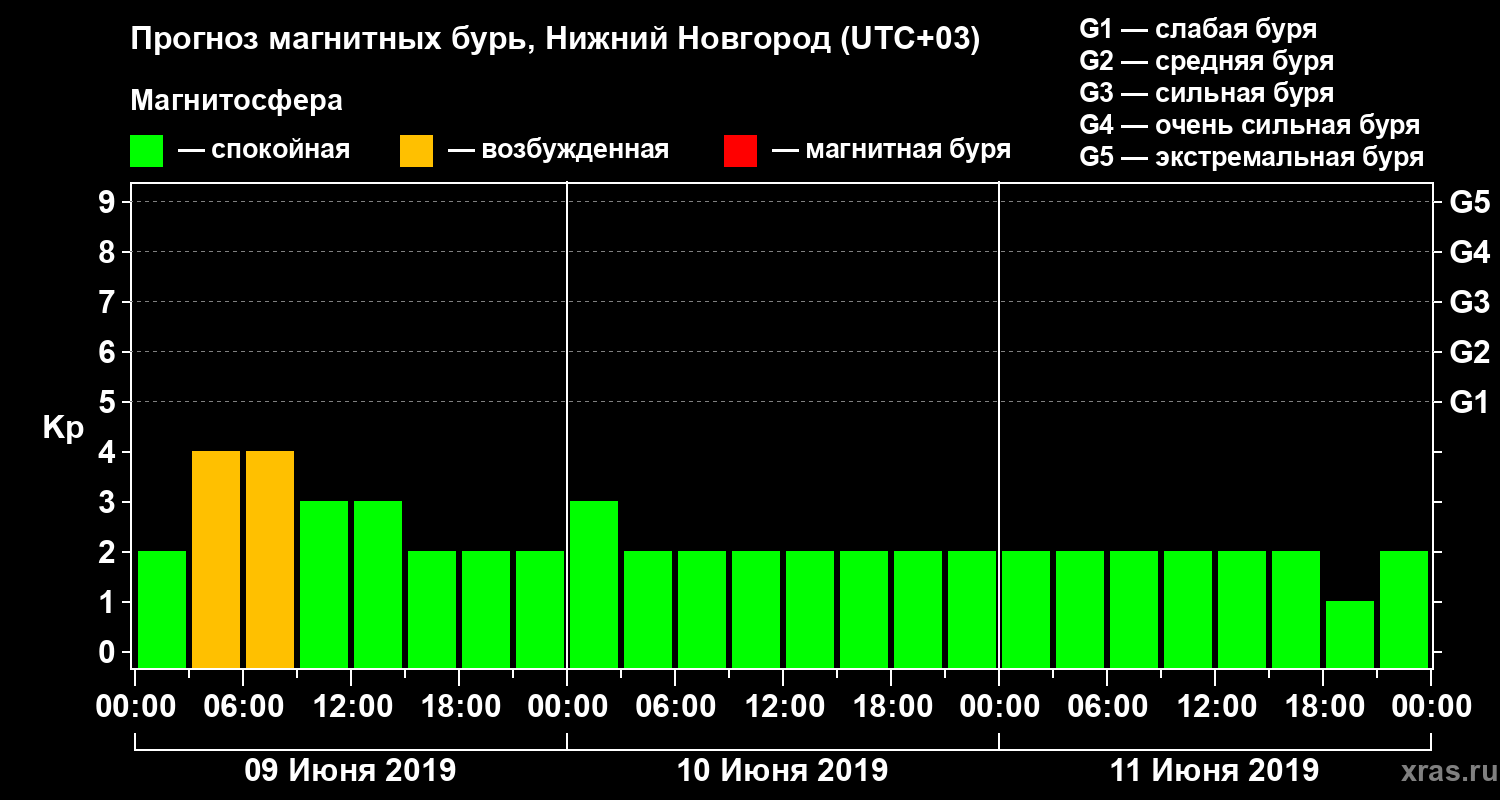 Прогноз магнитных бурь Нижнем Новгороде — 9 июня 2019 года
