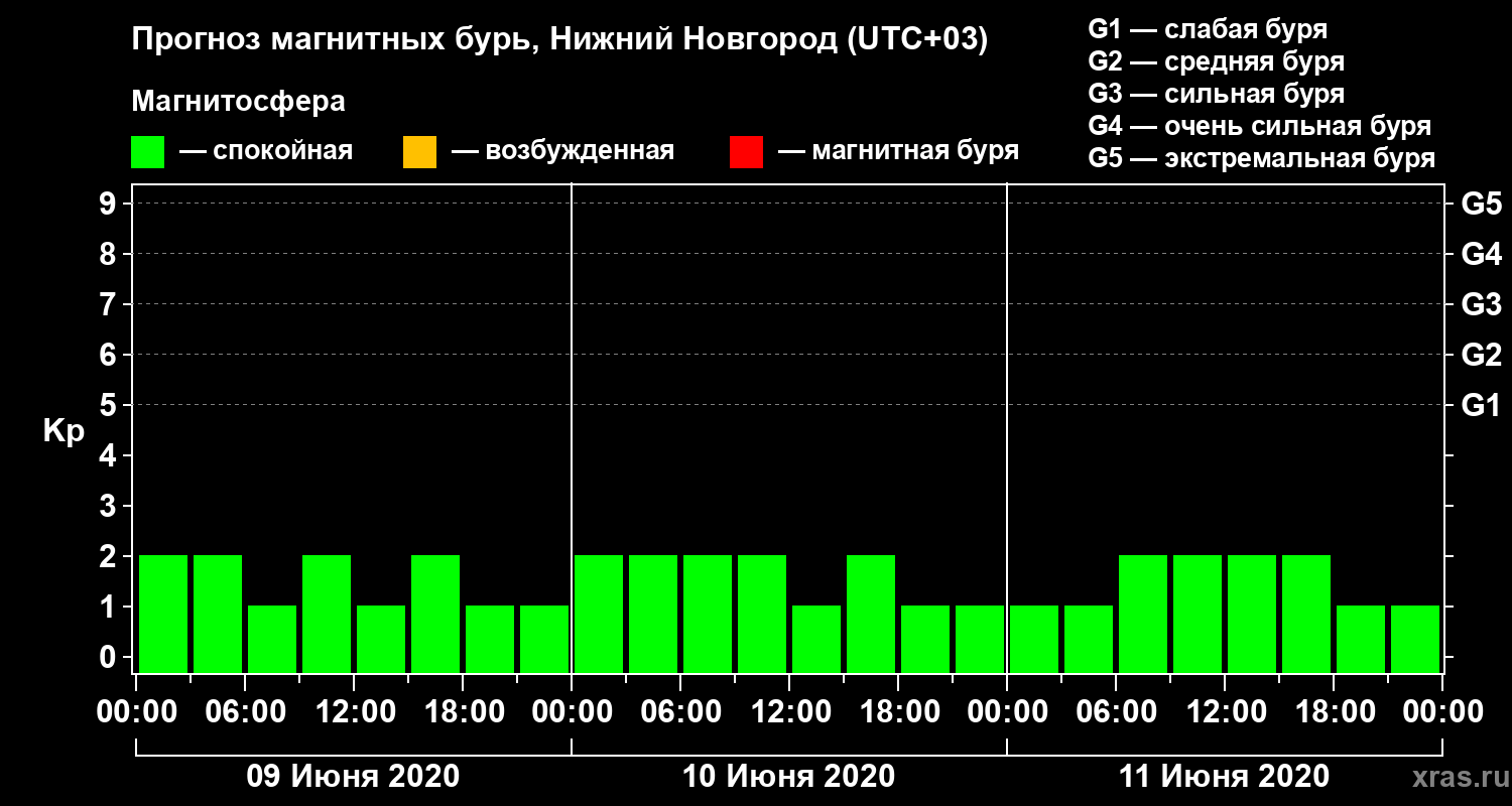 Прогноз магнитных бурь Нижнем Новгороде на 9 июня 2020 года