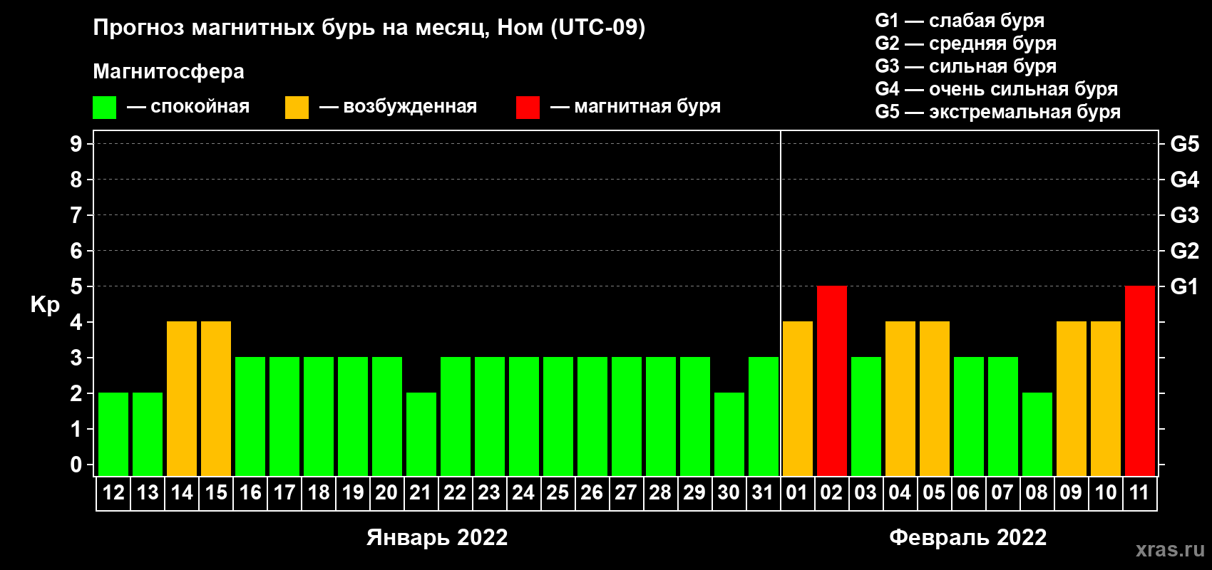 Прогноз магнитных бурь в Номе — 12 января 2022 года