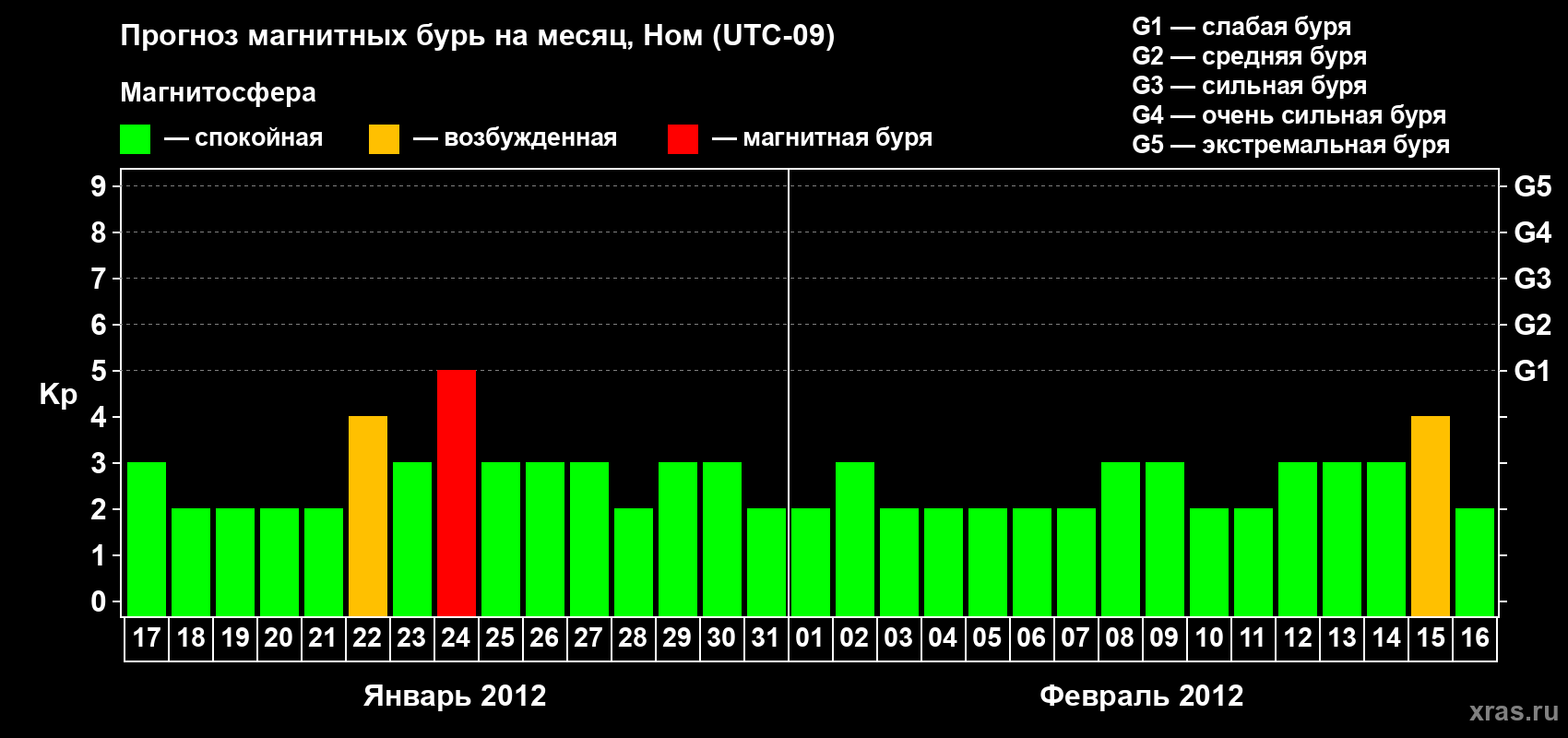Прогноз магнитных бурь в Номе — 17 января 2012 года