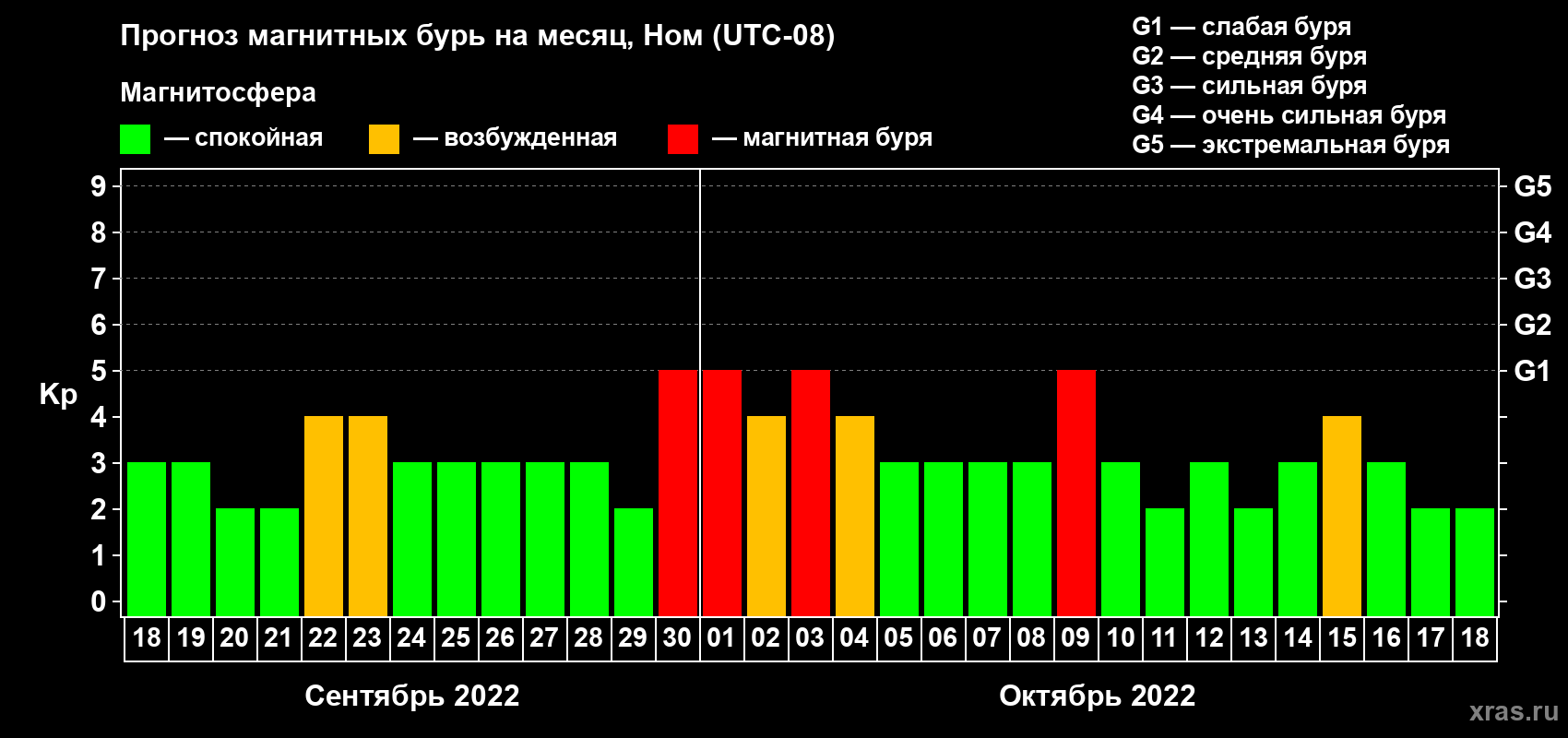 Прогноз магнитных бурь в Номе — 18 сентября 2022 года