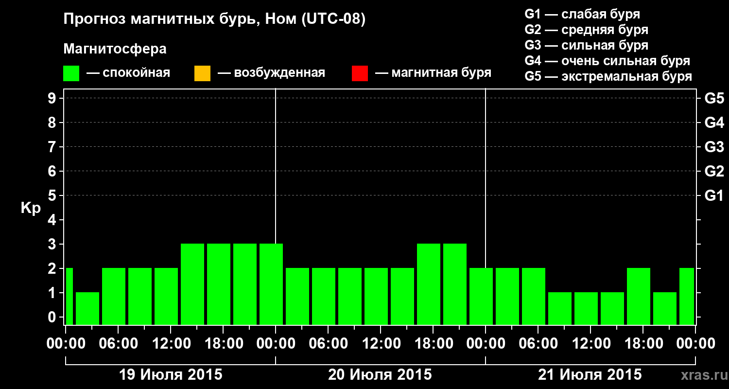 Прогноз магнитных бурь в Номе на 19 июля 2015 года