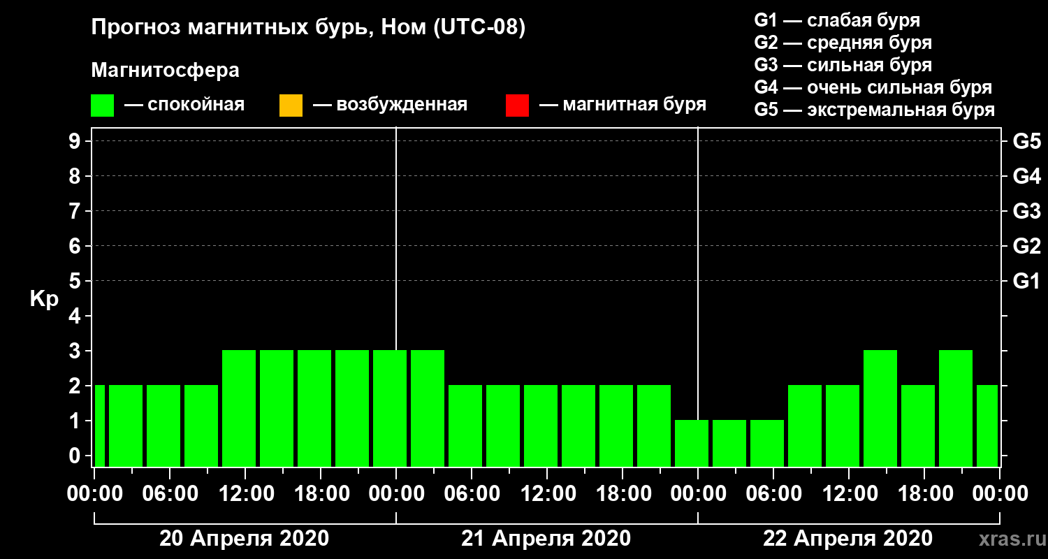 Прогноз магнитных бурь в Номе на 20 апреля 2020 года