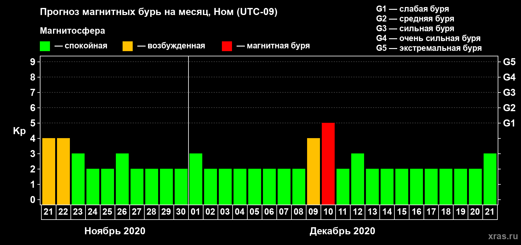 Прогноз магнитных бурь в Номе — 21 ноября 2020 года