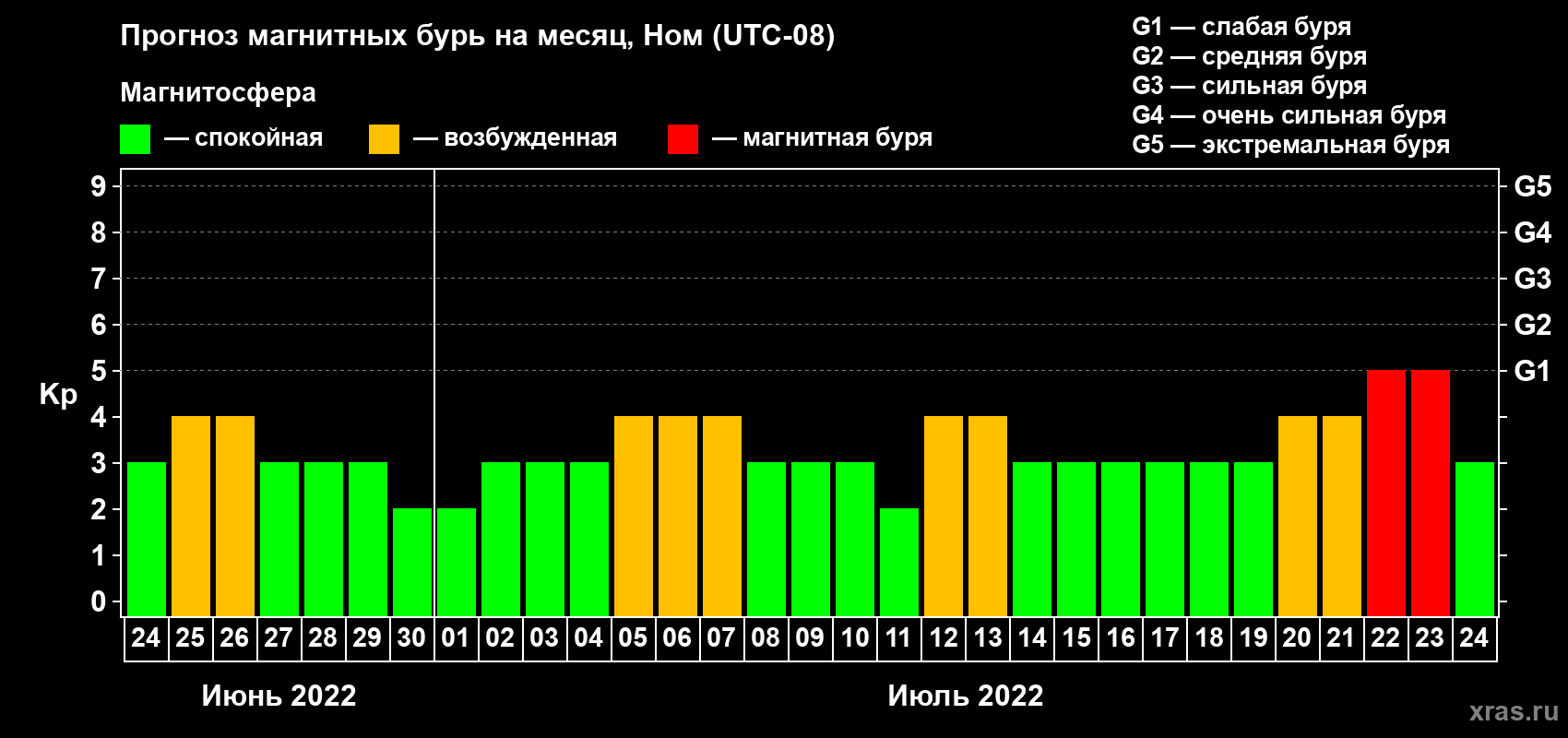 Прогноз магнитных бурь в Номе — 24 июня 2022 года