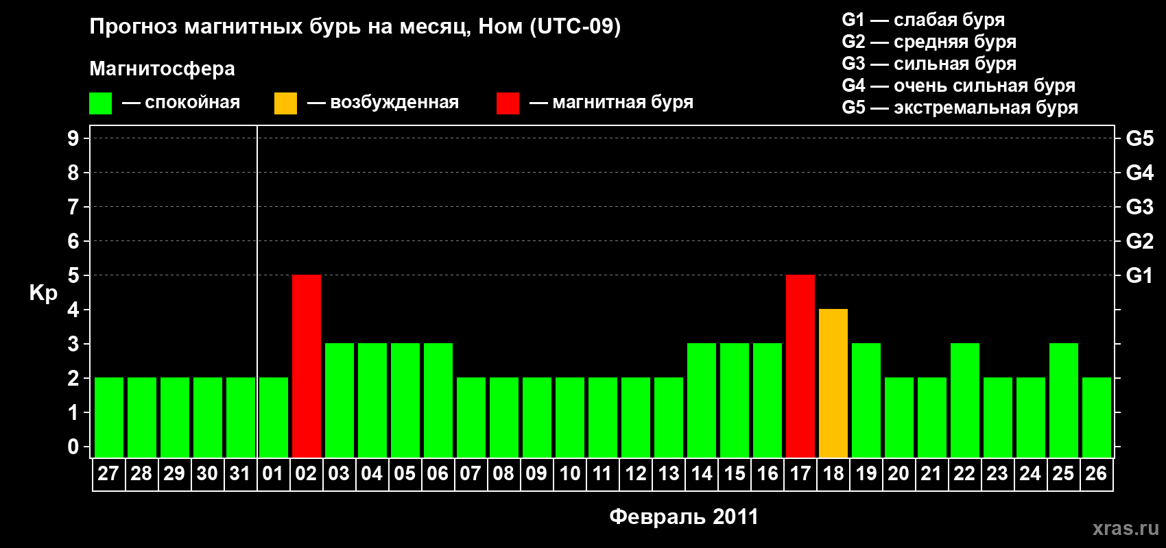 Прогноз магнитных бурь в Номе — 27 января 2011 года