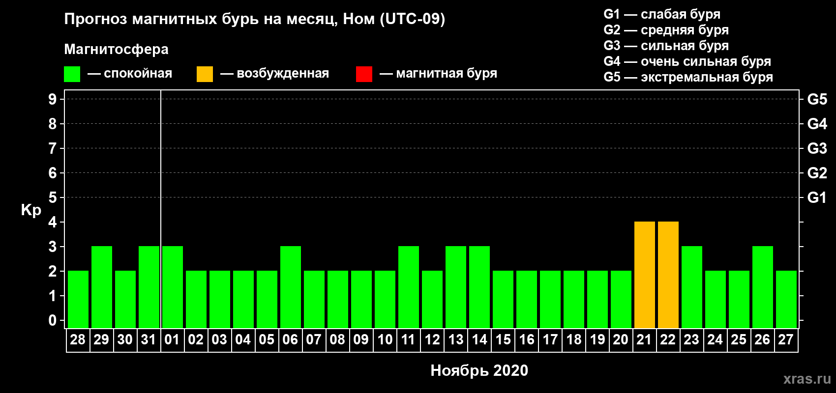 Прогноз магнитных бурь в Номе — 28 октября 2020 года