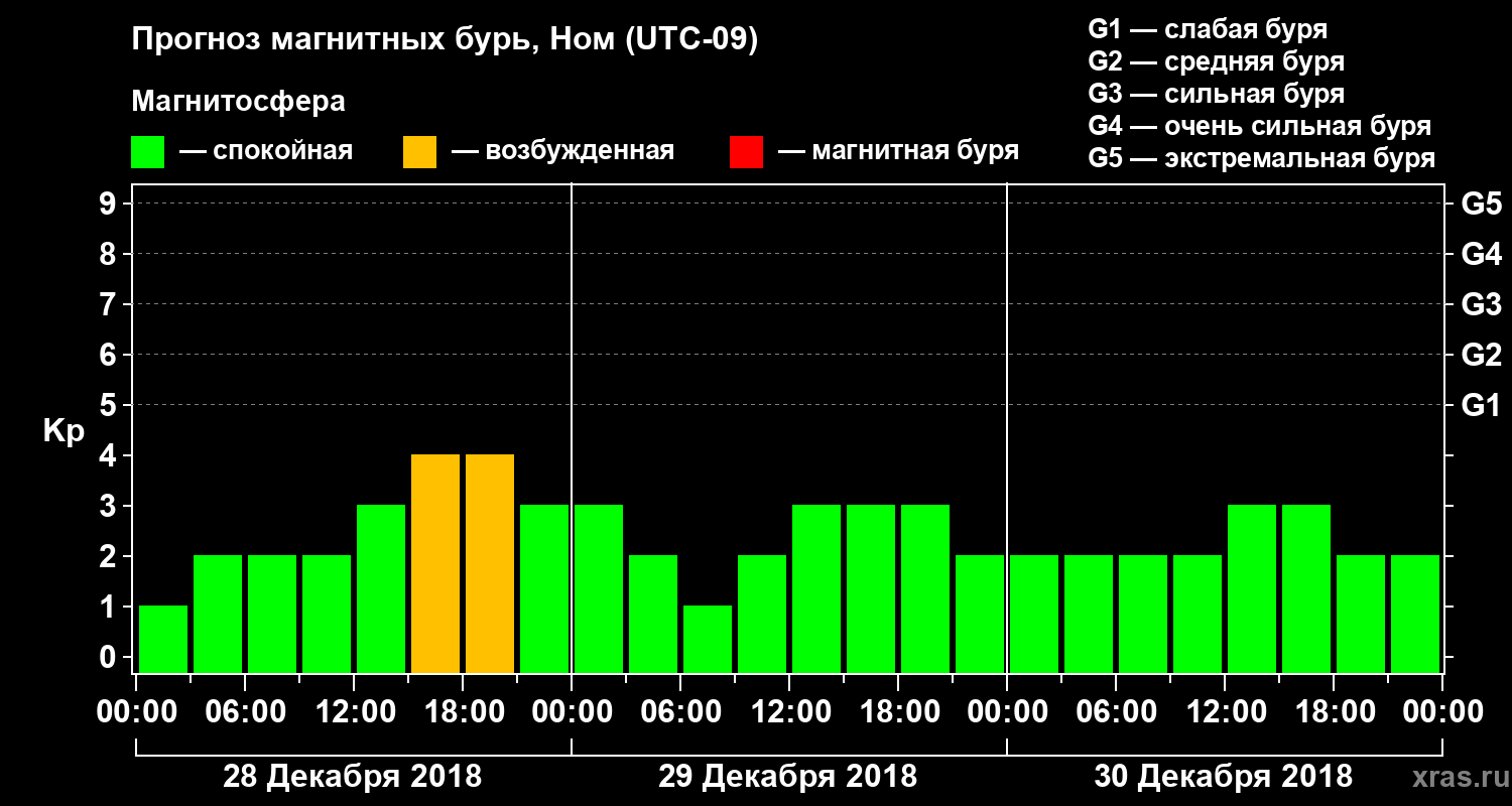 Прогноз магнитных бурь в Номе — 28 декабря 2018 года