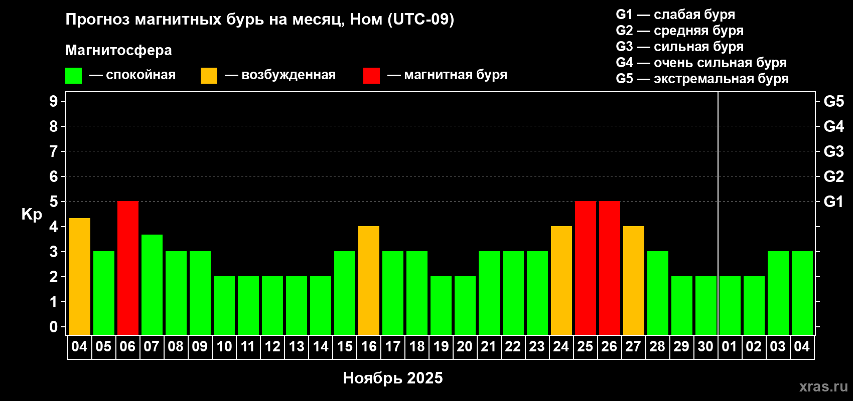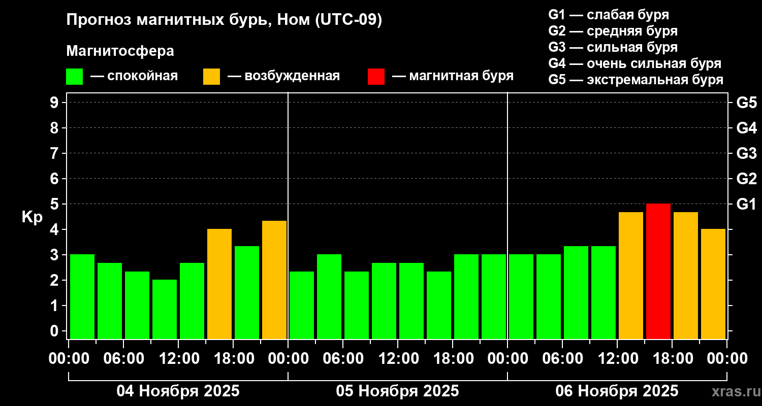 Прогноз магнитных бурь в Номе — 4 ноября 2025 года