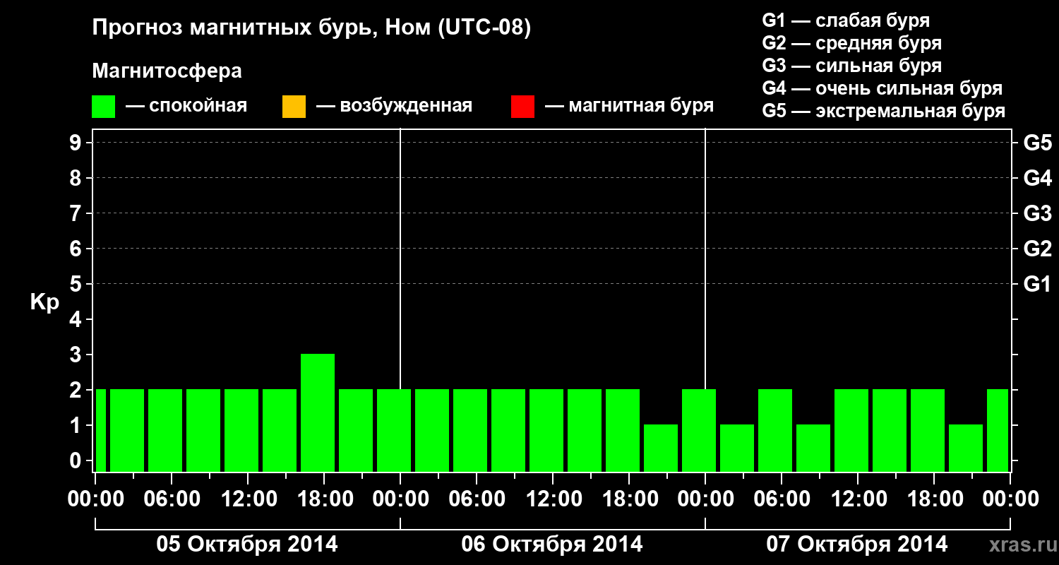 Прогноз магнитных бурь в Номе — 5 октября 2014 года