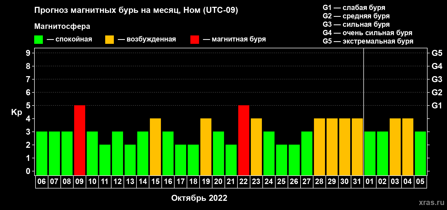 Прогноз магнитных бурь в Номе — 6 октября 2022 года