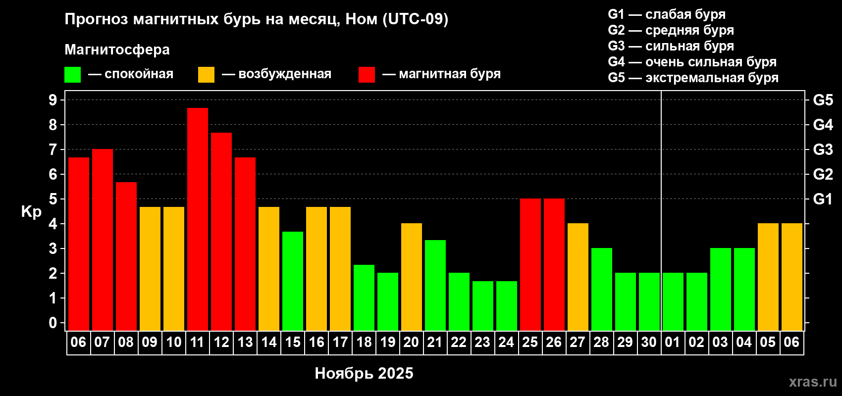 Прогноз магнитных бурь в Номе — 6 ноября 2025 года