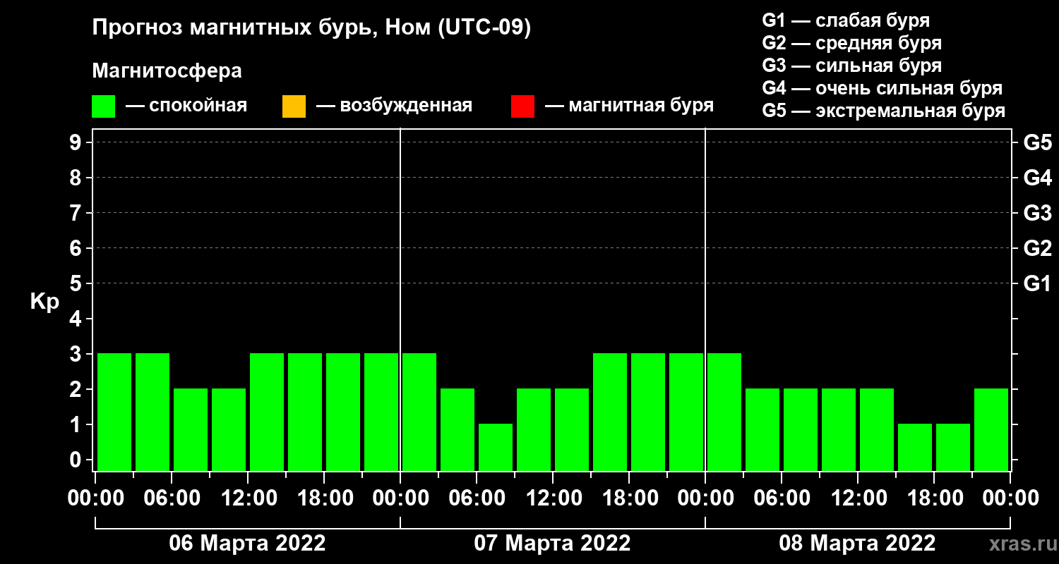Прогноз магнитных бурь в Номе — 6 марта 2022 года