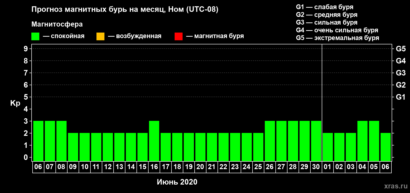 Прогноз магнитных бурь в Номе — 6 июня 2020 года