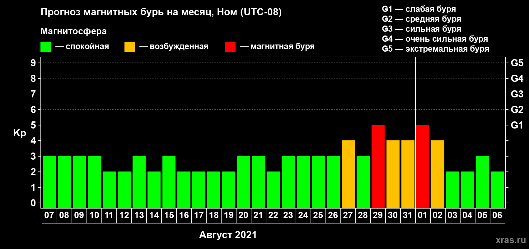 Прогноз магнитных бурь в Номе — 7 августа 2021 года