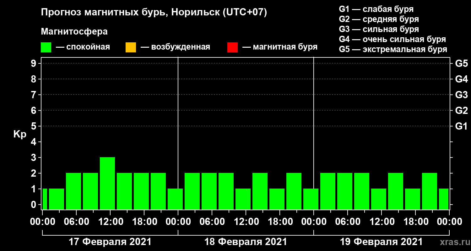 Прогноз магнитных бурь в Норильске — 17 февраля 2021 года