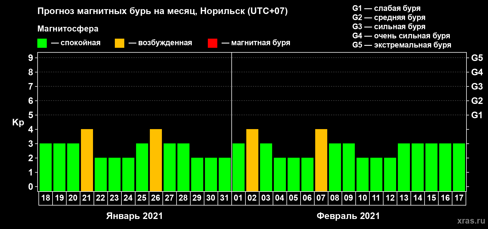 Прогноз магнитных бурь в Норильске — 18 января 2021 года