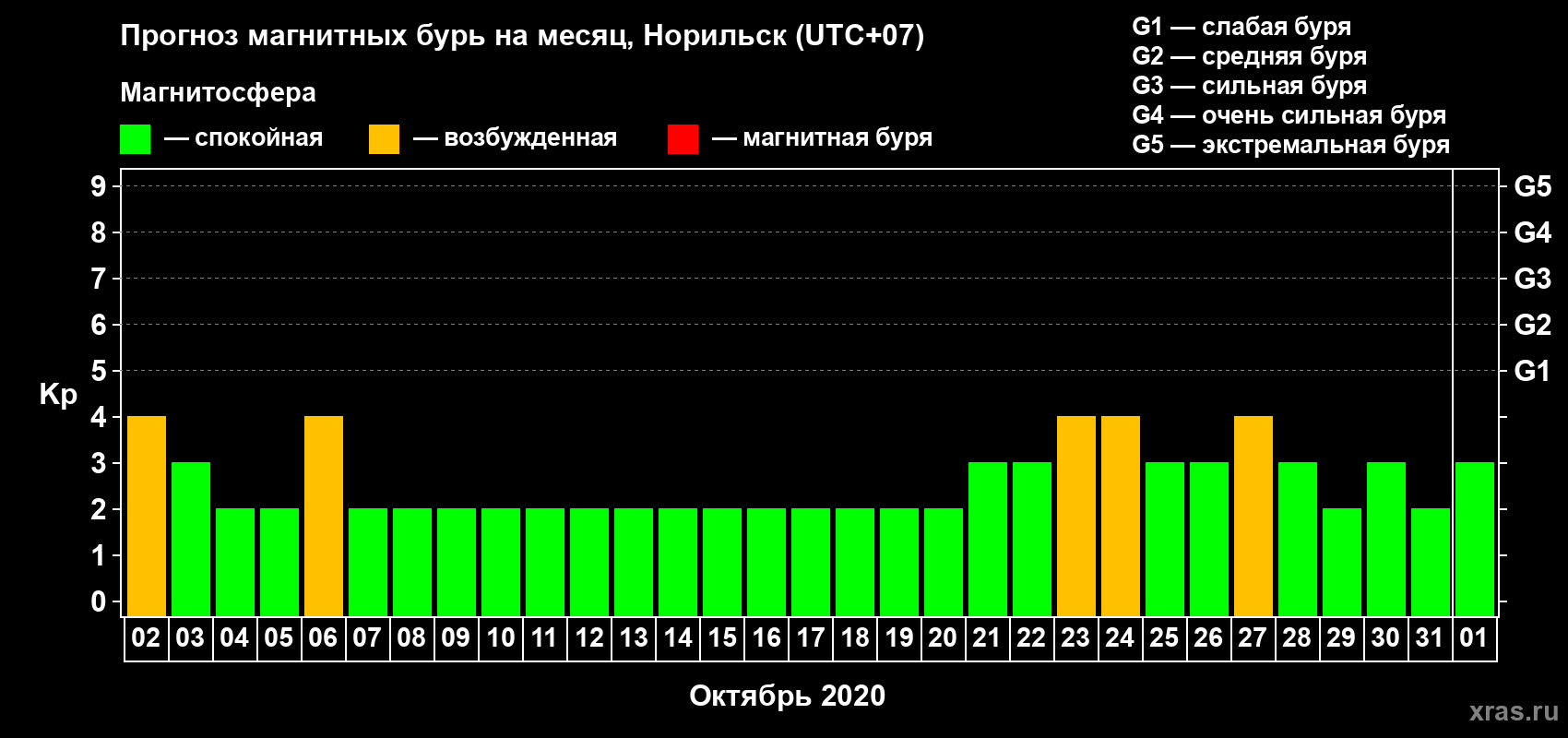 Прогноз магнитных бурь в Норильске — 2 октября 2020 года