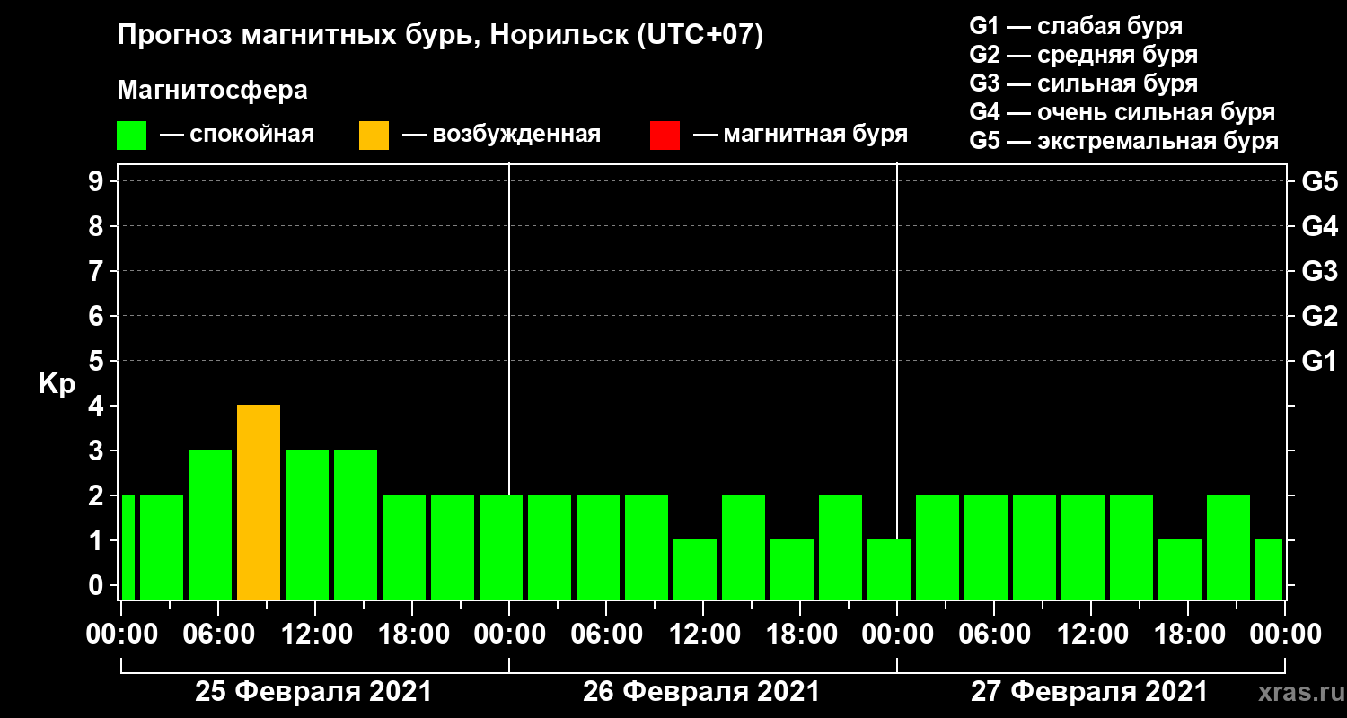 Прогноз магнитных бурь в Норильске — 25 февраля 2021 года