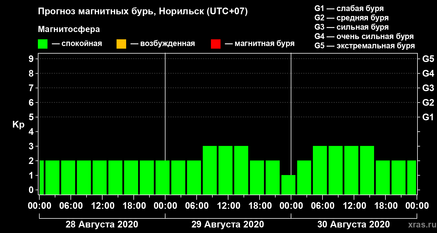 Прогноз магнитных бурь в Норильске — 28 августа 2020 года