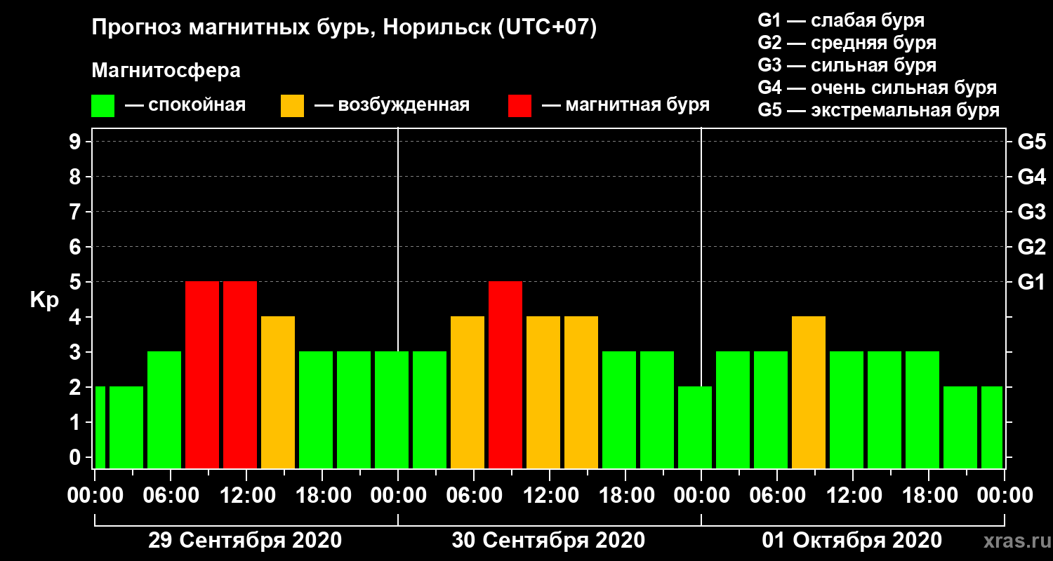 Прогноз магнитных бурь в Норильске — 29 сентября 2020 года