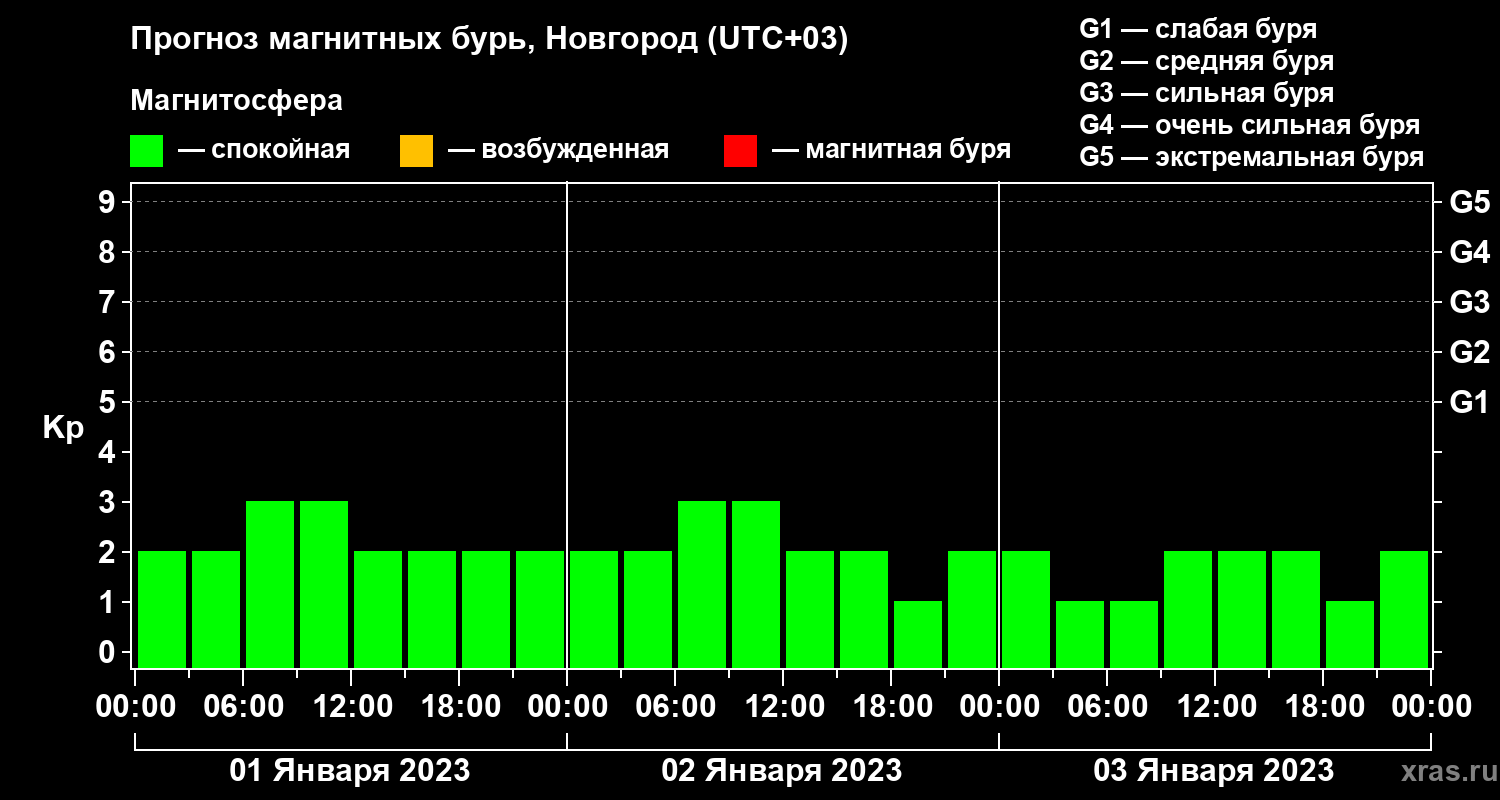 Прогноз магнитных бурь в Новгороде на 1 января 2023 года
