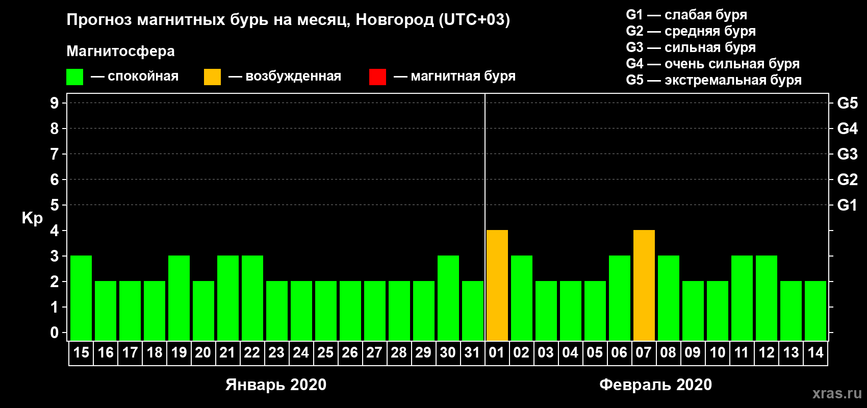 Прогноз магнитных бурь в Новгороде на 15 января 2020 года