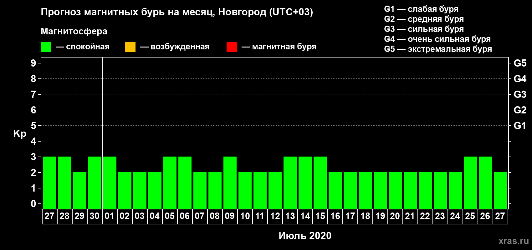 Прогноз магнитных бурь в Новгороде — 27 июня 2020 года