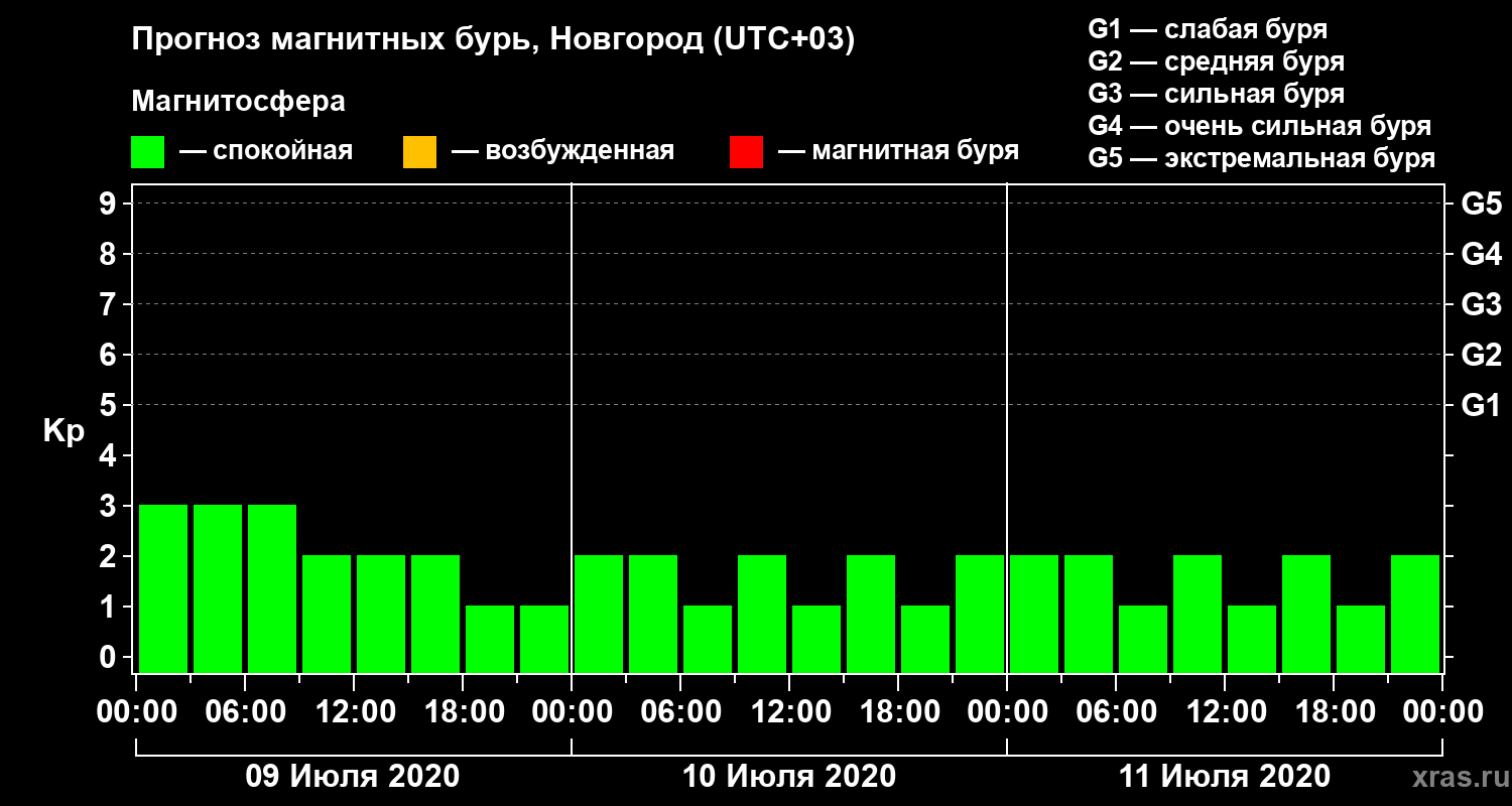 Прогноз магнитных бурь в Новгороде — 9 июля 2020 года