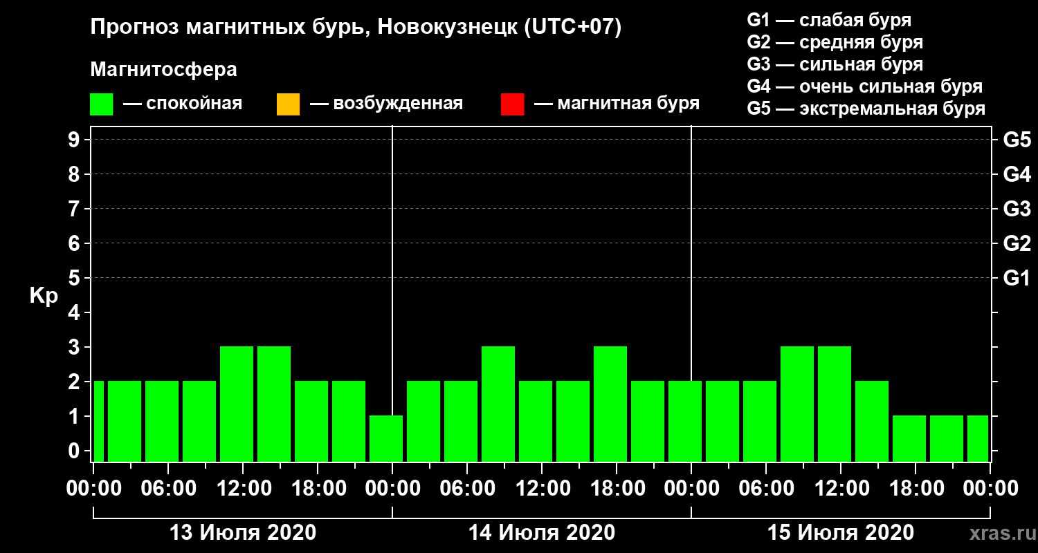Прогноз магнитных бурь в Новокузнецке на 13 июля 2020 года