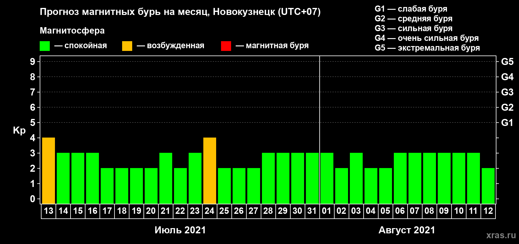 Прогноз магнитных бурь в Новокузнецке — 13 июля 2021 года
