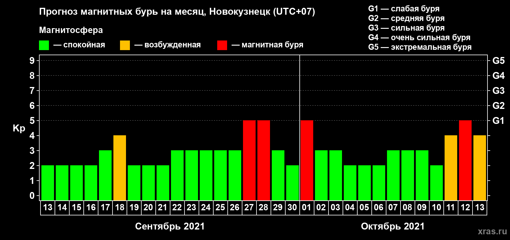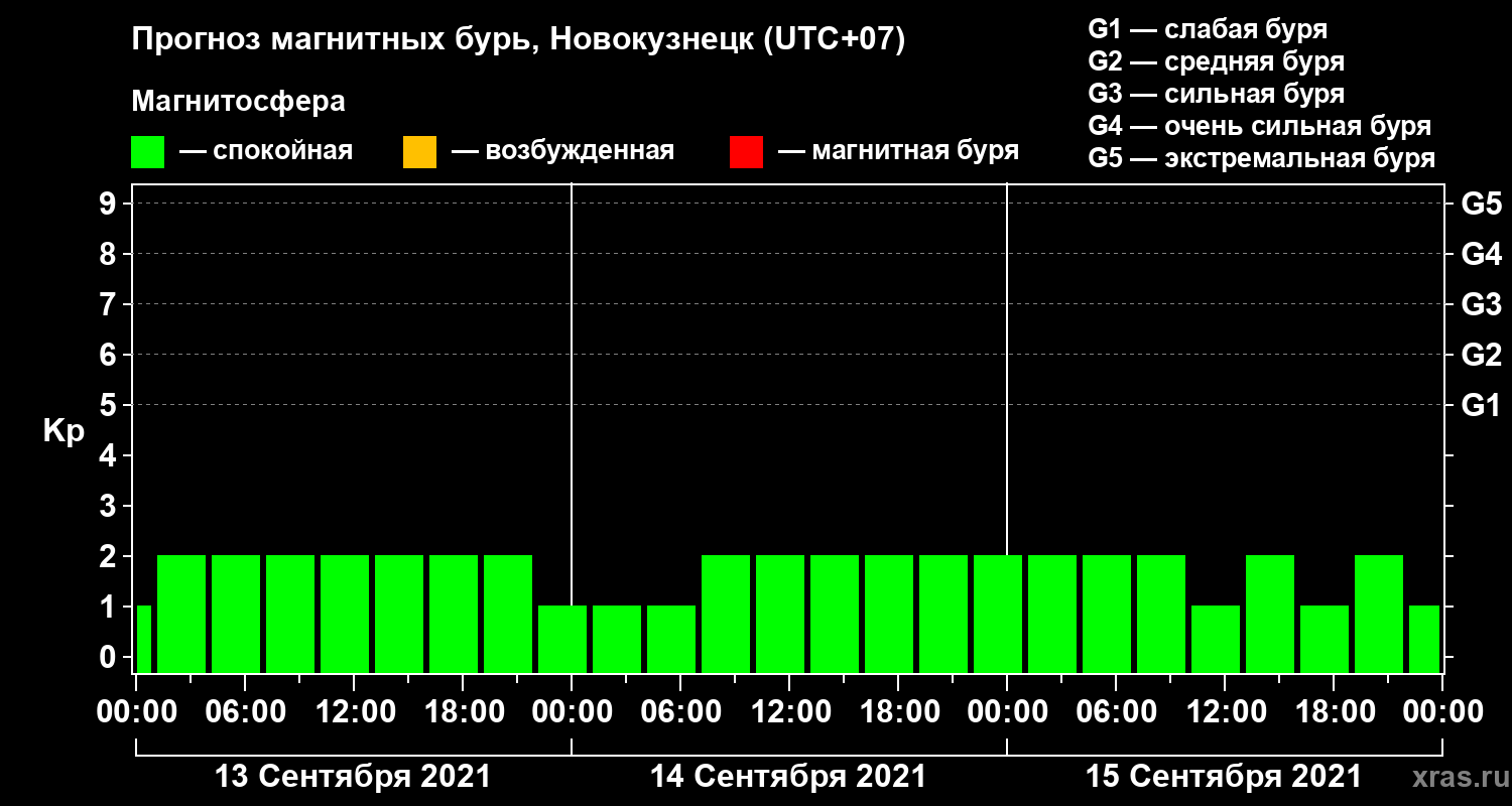 Прогноз магнитных бурь в Новокузнецке — 13 сентября 2021 года