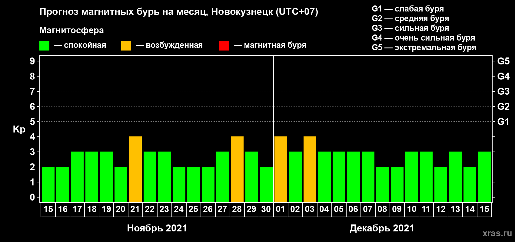 Прогноз магнитных бурь в Новокузнецке — 15 ноября 2021 года
