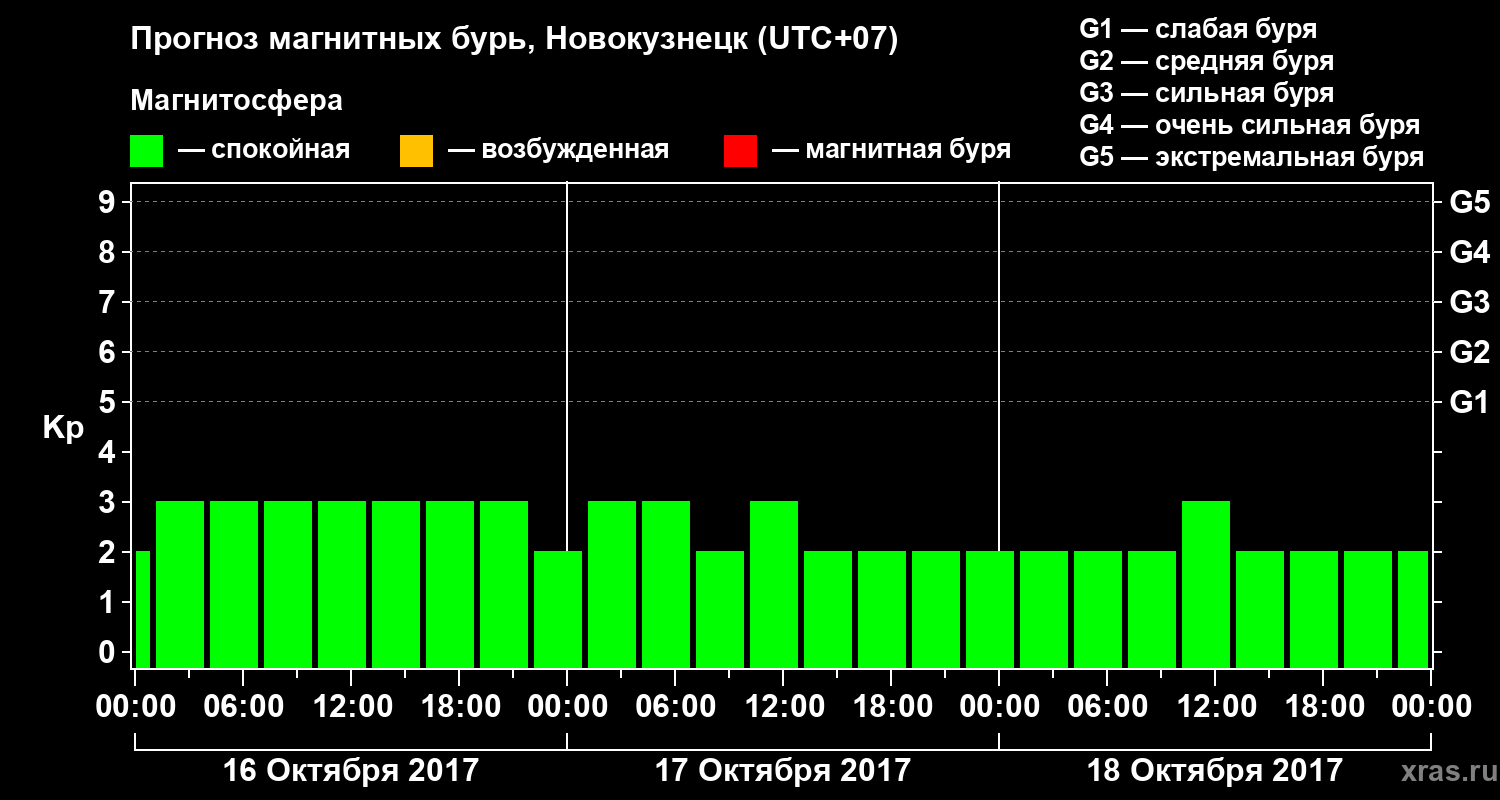 Прогноз магнитных бурь в Новокузнецке на 16 октября 2017 года
