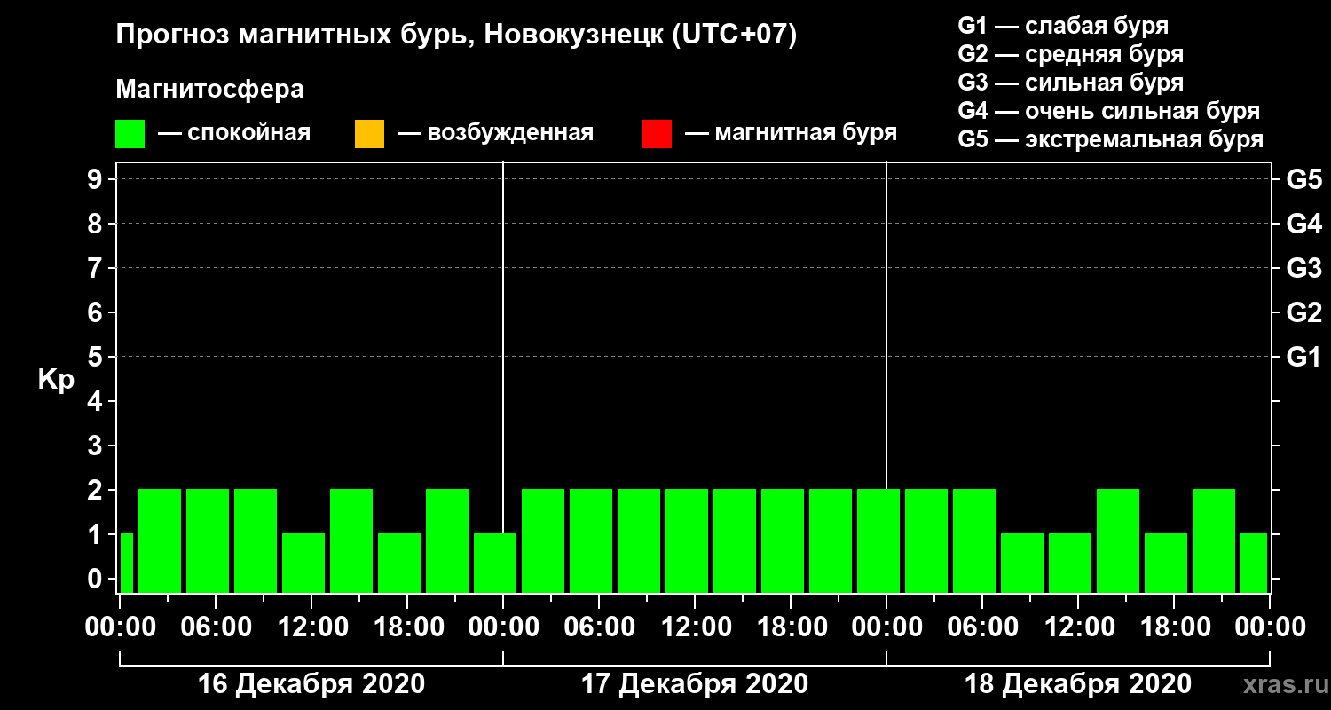 Прогноз магнитных бурь в Новокузнецке — 16 декабря 2020 года