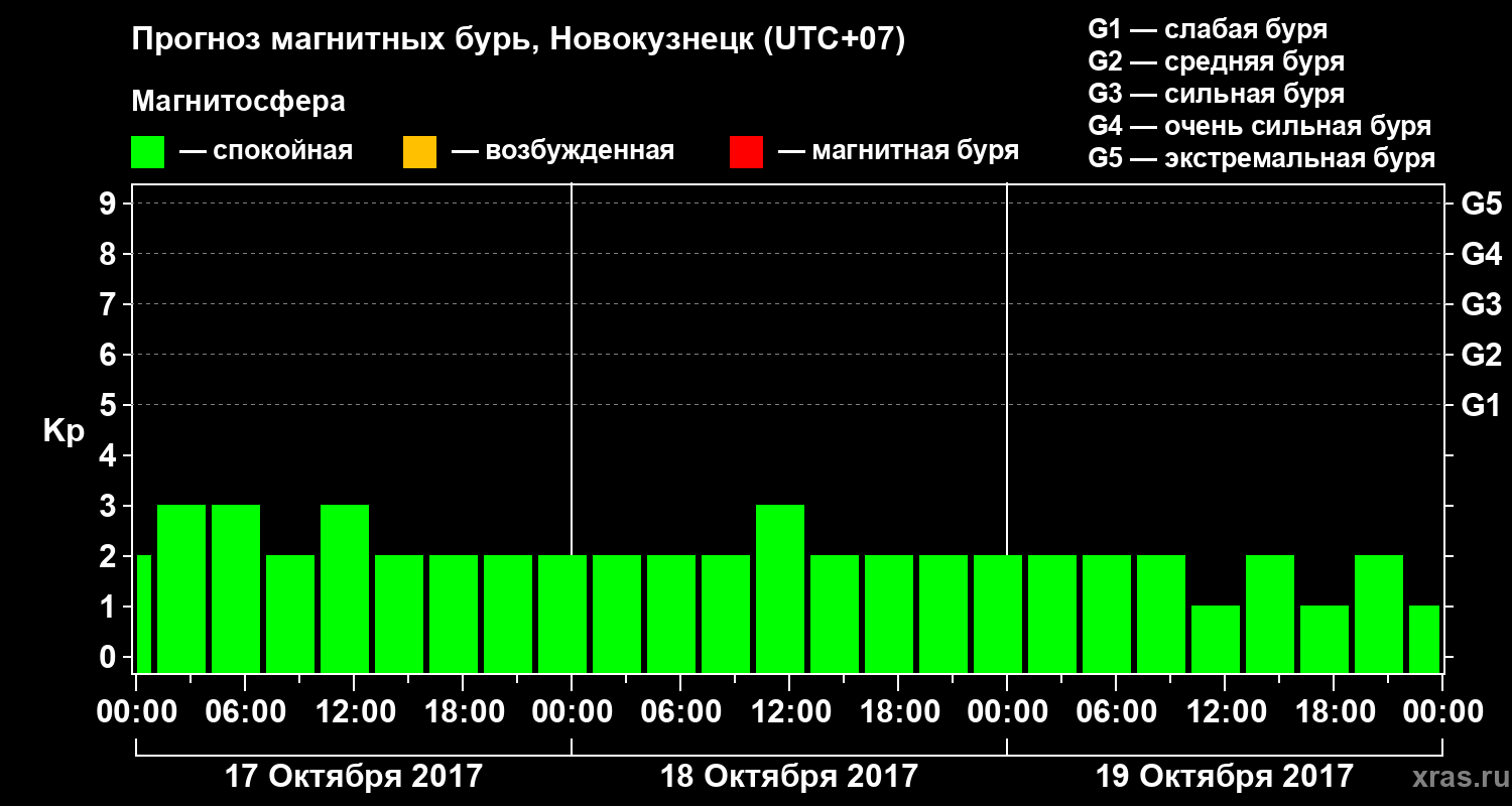 Прогноз магнитных бурь в Новокузнецке — 17 октября 2017 года