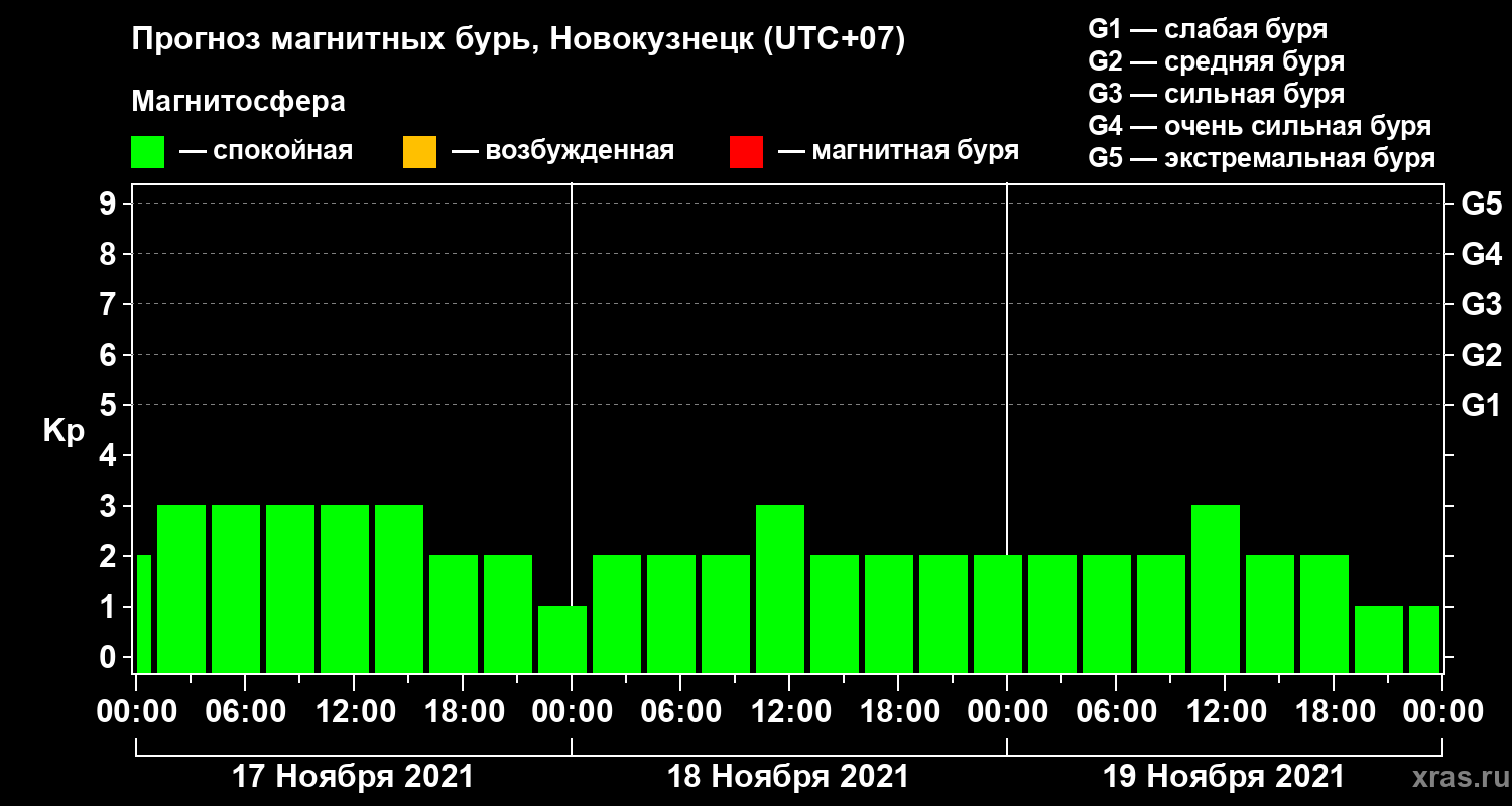 Прогноз магнитных бурь в Новокузнецке — 17 ноября 2021 года