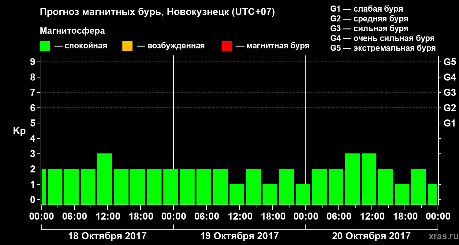 Прогноз магнитных бурь в Новокузнецке на 18 октября 2017 года