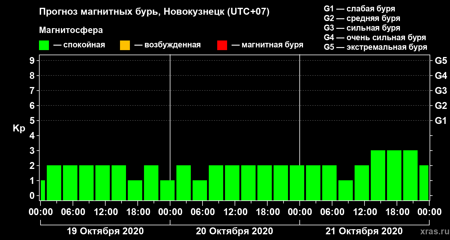 Прогноз магнитных бурь в Новокузнецке — 19 октября 2020 года