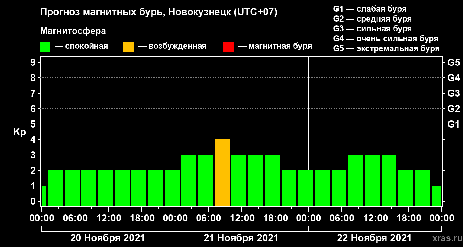 Прогноз магнитных бурь в Новокузнецке — 20 ноября 2021 года