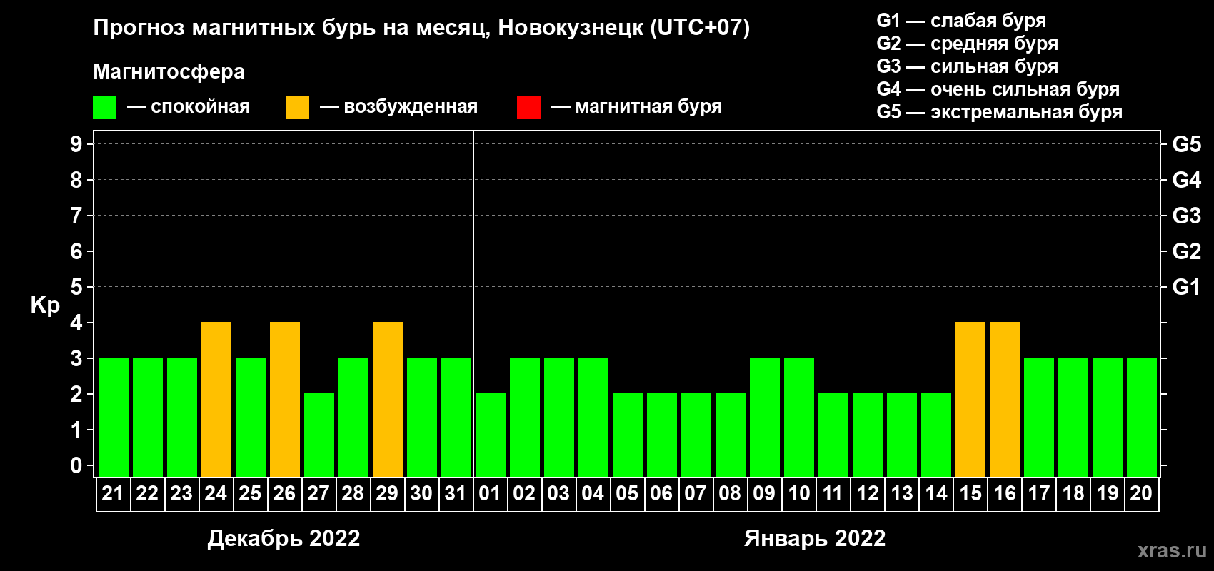 Прогноз магнитных бурь в Новокузнецке — 21 декабря 2021 года